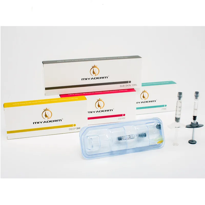 A Miyaderm ® A márka egy eredeti, nem állati eredetű hialuronsavas valódi bőr töltőanyag, amely használható az orr ajak ráncaira, homlokráncokra, homlokráncokra, nyaki ráncokra, orrra, állra, ajkakra, fülcimpákra, halántékra, arcra és testre.